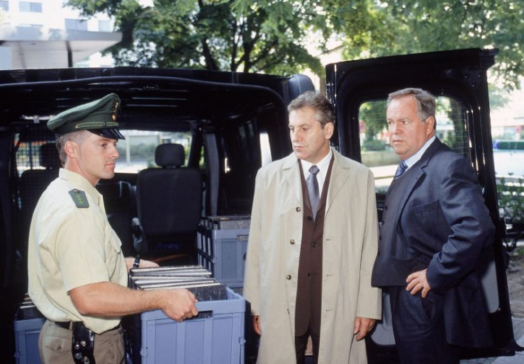 Bei einem Brand im LKA-Gebäude wurden wichtige Beweise vernichtet und ein Wachmann ist ums Leben gekommen. Dr. Duhler (Klaus Schindler, l.) teilt Kommissar Kehler (Wolfgang Bathke) erste Vermutungen mit.