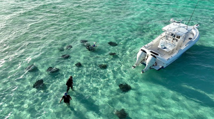 Hotspot für Rochen: Im North Sound, einer großen Lagune auf der Hauptinsel, tummeln sich viele der Tiere. Sie bekommen regelmäßig Besuch von Wissenschaftlern, die einzelne Exemplare mit Sendern versehen.