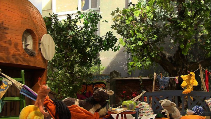 Pferd und Wolle bauen sich eine "Chill-out"-Ecke im Garten und lassen sich von Finchen bedienen.