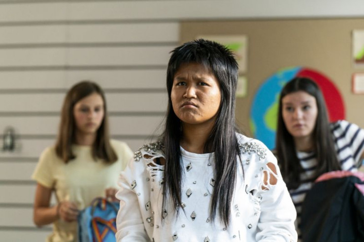 Massuda (Tisa Pharischad Khumyim, vorne) ist irritiert, weil die Note ihres Aufsatzes nicht in der Übersicht von Herrn Zech angezeigt wurde.