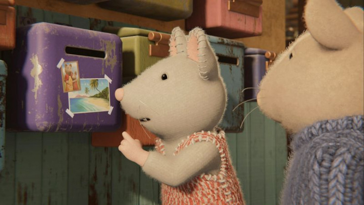 Julia (links) entdeckt eine Postkarte von ihrer Heimatinsel an ihrem Briefkasten. Das bringt sie auf die Idee, ihrem besten Freund Sam (rechts) alles über die Insel und wie sie dort gelebt hat, zu erzählen.