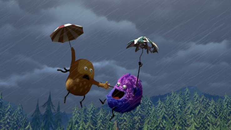 Strit liebt stürmisches, regnerisches Wetter! Kiwi möchte sich lieber mit einem Regenschirm schützen, aber als er diesen draußen aufmacht, wird er vom Sturm davon geweht. Strit rennt sofort los, um Kiwi wiederzufinden. Schließlich entdeckt er ihn im höchsten Baum des Waldes...