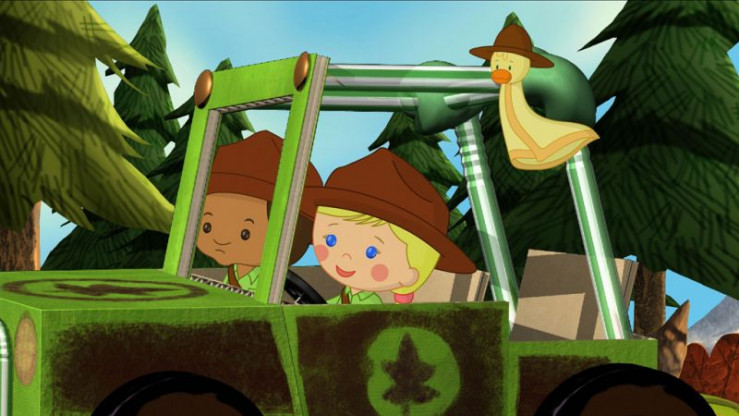 Hamid, Zoé (Mi.) und QuackQuack sind diesmal Waldhüter und fahren hier im Jeep durch die Gegend.