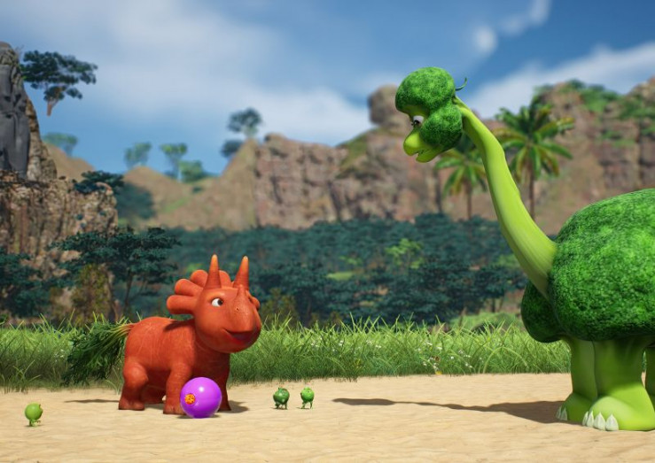 Ginger will eine Flanke auf den Kopf des Brokkolisauriers schlagen. © ZDF/Cheeky Little Media - Honorarfreie Verwendung gemäß AGB im redaktionellen Zusammenhang mit genannter Sendung bei Nennung "Bild: ZDF/Cheeky Little Media" einschließlich Social Media Einschließlich Social Media© ZDF/Cheeky Little Media - Honorarfreie Verwendung gemäß AGB im redaktionellen Zusammenhang mit genannter Sendung bei Nennung "Bild: ZDF/Cheeky Little Media" einschließlich Social Media Einschließlich Social Media