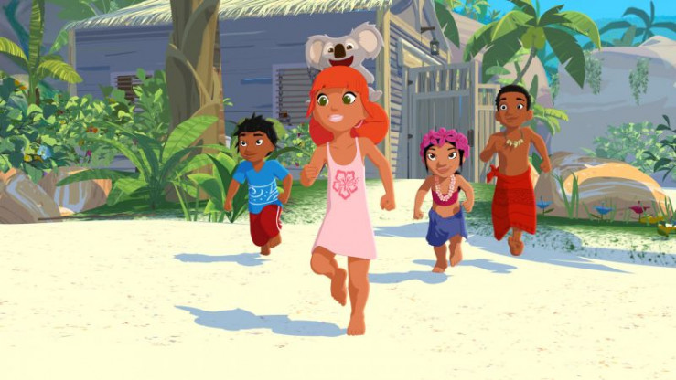 Marina (v.) freut sich, dass sie Besuch von ihren Freunden Kai (l.), Tevati (2.v.r.) und Onaku (r.) bekommt. Sie will ihnen all ihre Spielsachen zeigen.