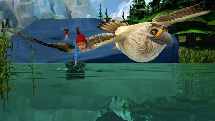 Zwei große Adler greifen die Schar an und jagen Martin und Daunenfein in eine Felshöhle. Um sie daraus zu befreien, schmiedet Nils einen Plan: Gorgo soll sich zu den Adlern gesellen und sie von der Höhle weglocken, so dass er die beiden verschütteten Freunde befreien kann. Bleibt nur das Problem, dass Gorgo denkt er sei eine Wildgans und schreckliche Angst vor Adlern hat.