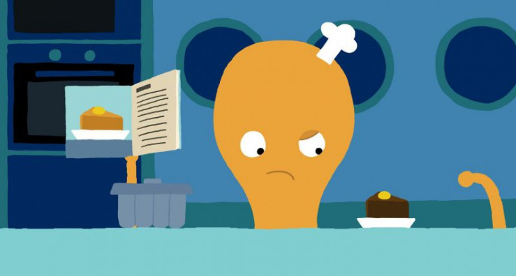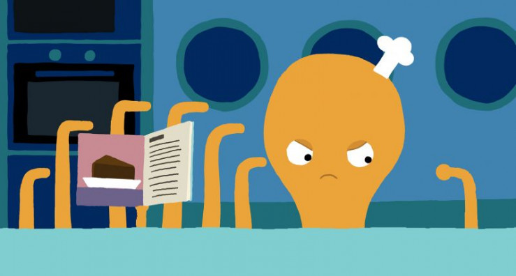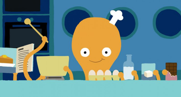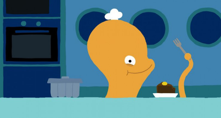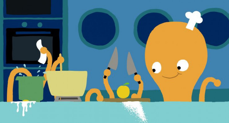 Die Krake möchte in ihrer Unterwasserküche einen schönen Pfirsichkuchen backen. Aber einer ihrer Arme hat andere Pläne.