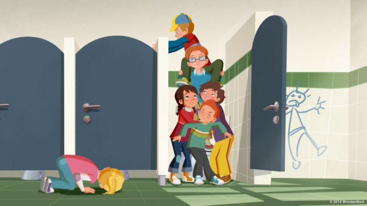 Fritzi hat sich nämlich Hals über Kopf ins Jungenklo geflüchtet. Sicher würde sie nie wieder aufschließen, wenn die anderen Kinder nicht zu Hilfe kämen. Die machen sich daran, Fritzi beizubringen, dass ihr in der neuen Schulklasse keine Gefahr droht.