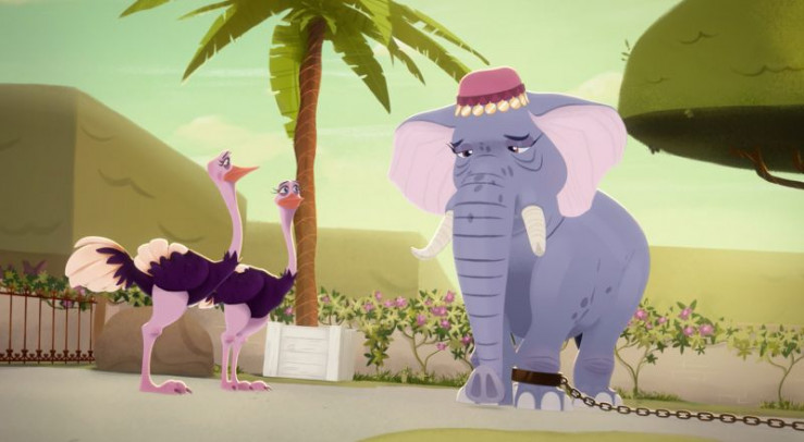 Die Elefantendame Madame Rosa ist gefesselt. Sie soll die Erbsen des Königs gegessen haben.