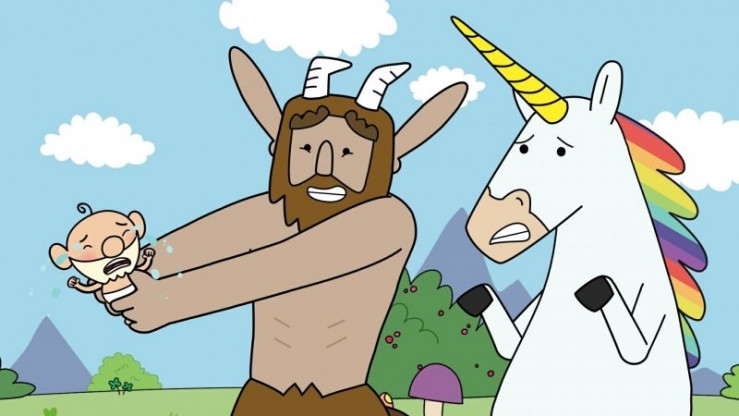 Herbert (links) hat es mit dem Trinken vom Jungbrunnenwasser übertrieben. Nun hat er sich zum Baby zurück verwandelt. Hufius und Blümchen sind gefordert.