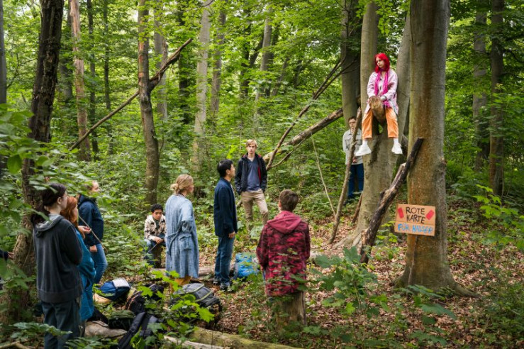Rebellion auf Schloss Einstein: Ava (Mia Stieber, vorne), Mikka (Jona Kirchner, links) und Massuda (Tisa Pharischad Khumyim, rechts) sind in den Wald gezogen und treffen dort auf eine flauschige Überraschung. © mdr/Saxonia Media/Thomas Dietze - Honorarfreie Verwendung gemäß AGB im redaktionellen Zusammenhang mit genannter Sendung bei Nennung "Bild: mdr/Saxonia Media/Thomas Dietze" einschließlich Social Media Einschließlich Social Media© mdr/Saxonia Media/Thomas Dietze - Honorarfreie Verwendung gemäß AGB im redaktionellen Zusammenhang mit genannter Sendung bei Nennung "Bild: mdr/Saxonia Media/Thomas Dietze" einschließlich Social Media Einschließlich Social Media