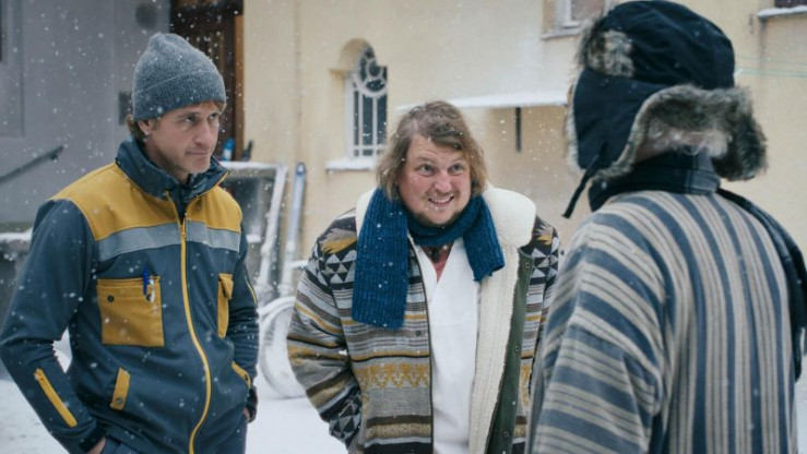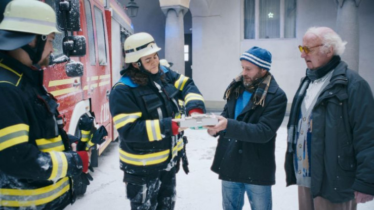 Feuerwehrfrau (Isabel Eichinger), Florian Eder (Florian Brückner), Herr Sorgichev (Herman van Ulzen, r.)