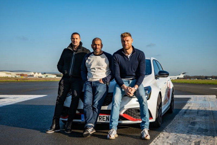 V.l.: Freddie Flintoff, Chris Harris, Paddy McGuinness