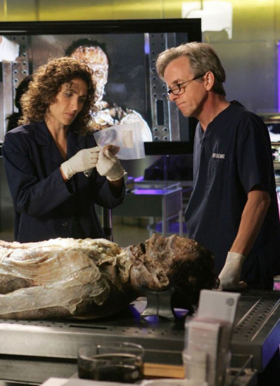 Die Detectives Stella Bonasera (Melina Kanakaredes) und Mac Taylor (Gary Sinise) sind auf Fotos vom Tatort angewiesen, um die Geschehnisse zu rekonstruieren.