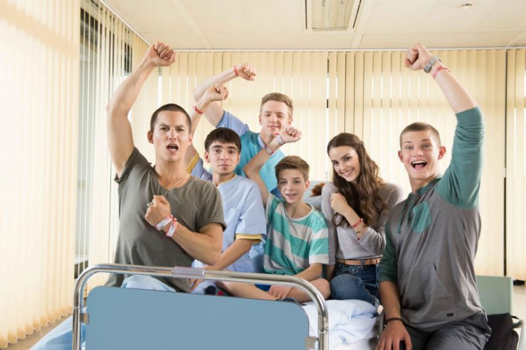 V.l.: Alex (Timur Bartels), Jonas (Damian Hardung), Hugo (Nick Julius Schuck), Toni (Ivo Kortlang), Emma (Luise Befort) und Leo (Tim Oliver Schultz)