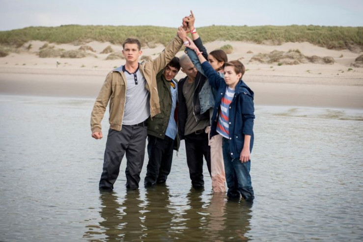 V.l.: Jonas (Damian Hardung), Toni (Ivo Kortlang), Leo (Tim Oliver Schultz), Emma (Luise Befort) und Hugo (Nick Julius Schuck) planen eine große Reise ans Meer.