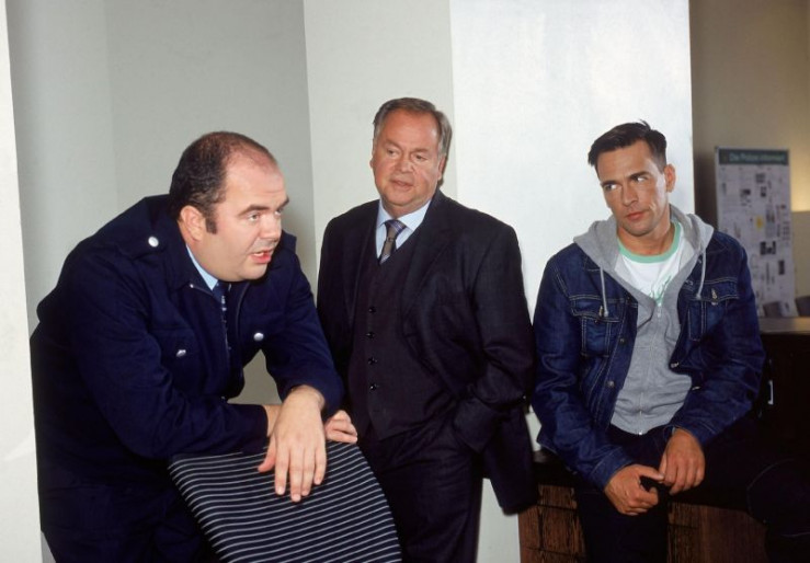 Delling (Christian Korner, r.) gibt den Kommissaren Kehler (Wolfgang Bathke, l.) und Bonhoff (Wolfgang Krewe) einen wichtigen Hinweis.