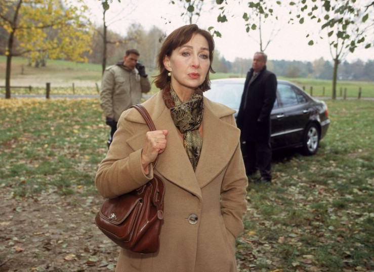 Obwohl sie nicht an "Übersinnliches" glauben, folgen die Ermittler Bonhoff (Wolfgang Krewe, hi.li.) und Kehler (Wolfgang Bathke) der Wahrsagerin Frau Meyer-Arndt (Christine Kaufmann), die sie zu der verschwundenen Annette führen will.