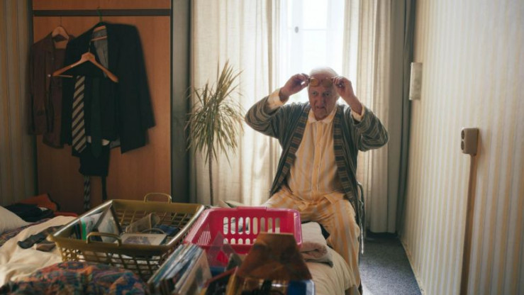 V.l.: Umzugshelfer Franz (Jakob Geßner), Pfleger Barnabas (Franz-Xaver Zeller), Herr Sorgichev (Herman van Ulzen)