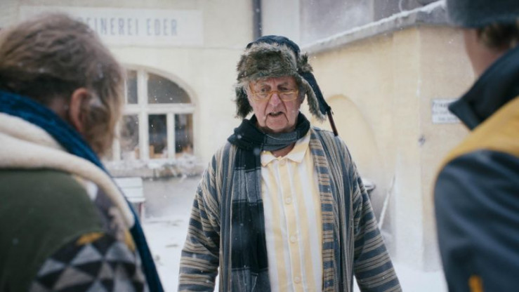 V.l.: Pfleger Barnabas (Franz-Xaver Zeller), Herr Sorgichev (Herman van Ulzen), Umzugshelfer Franz (Jakob Geßner)