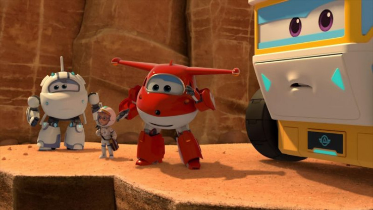 Die Super Wings (li.), Nika (mi.) und Rover (re.) landen auf dem Mars, um dort einen weiteren Stein für Nikas Gesteins-Sammlung zu finden.