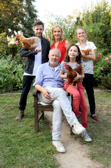 Neues von der Familie Teuffel aus dem brandenburgischen Dorf Krummenwalde. Beate (Katja Flint) und Steffen (Axel Milberg) mit ihren Sprösslingen Sophie (Salome Ridder, vorne rechts), Kai (Martin Aselmann, hinten li.) und Lisa (Anke Retzlaff, hinten re.).