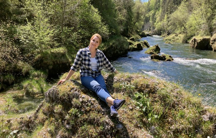 Judith Rakers an der Traun, einem beliebten Tauch- und Schnorchelgebiet am Traunfall-Wasserfall.