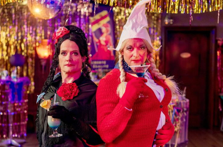 Die Männer haben keinen Zutritt zur Fasnetparty im Löwen. Markus (Sebastian Mirow, li.) und Bernd (Martin Wangler) versuchen ihr Glück als Frauen verkleidet.