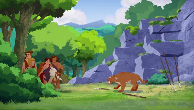 Während die Jäger Tumtum und den Säbelzahntiger jagen, bringt Tib den Dino in ein Versteck. Tara und Kori helfen ihm dabei. Doch Tib wird im Dorf vermisst, und Tara muss Rede und Antwort stehen. Tibs Eltern, die Jäger und Aron ziehen los, um Tib zu suchen und vor dem Dinosaurier "zu retten". Als sie die beiden schließlich finden und Tumtum erlegt werden soll, greift Säbelzahn den Stamm an. Doch dann schaltet sich Tumtum ein.