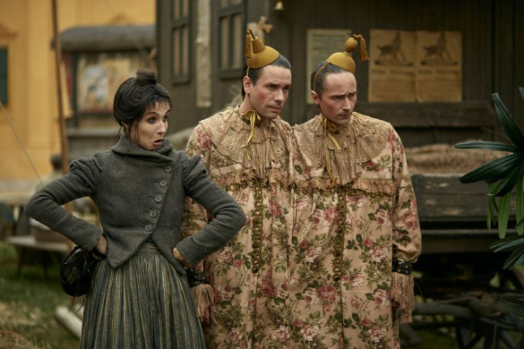Die Brüder Rodovit (Jaroslav Plesl, rechts) und Rodovoj (Václav Neužil, Mitte) wollen für Urban das Beste und beraten ihn dafür in ausgefallenen Verkleidungen. Ihre Schwester Lichoradka (Jana Plodková, links) bevorzugt graue Lumpen. Sie ist immer grantig und will Urban mit allen Mitteln ins Verderben ziehen.
