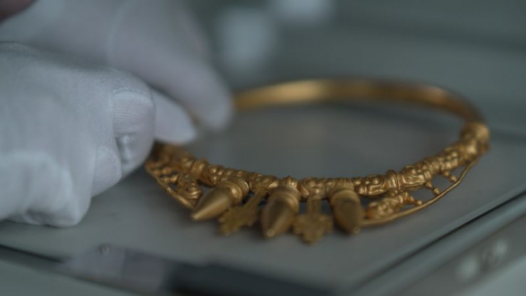 Der keltische Halsreif vom Goldschatz am Glauberg, Keltenwelt am Glauberg.