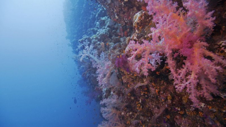 Licht liebende Korallen siedeln im Roten Meer noch in 50 Meter Tiefe.