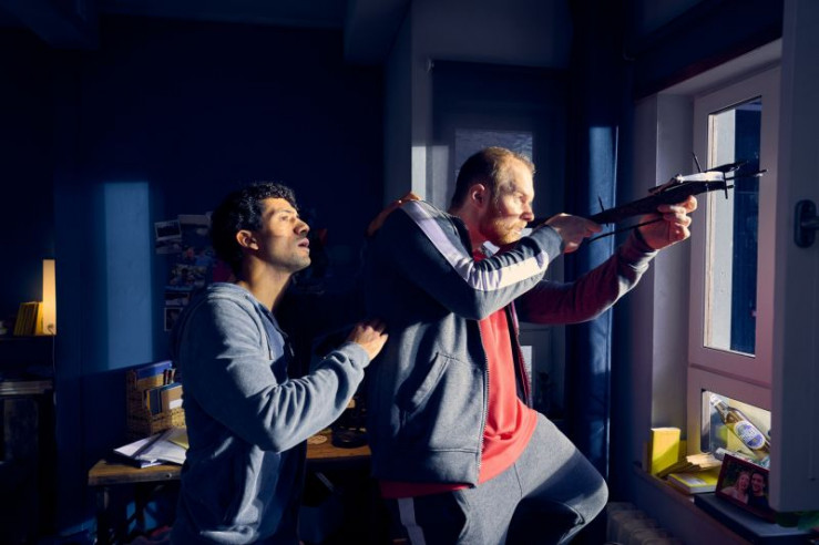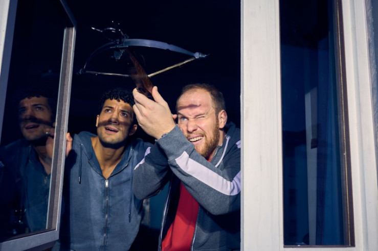Yannik hat die Wohnung für sich. Also macht er es sich in der Badewanne so richtig gemütlich. Mit Badeschaum und erotischen Kurzfilmen aus dem Internet. Doch die gemütliche Stimmung hält nicht lange. Denn ein ungebetener Gast kommt durch das Fenster geflogen und drei weitere ungebeten Gäste stehen vor der Wohnungstür. Fehlen nur noch eine Armbrust und ein Dosenöffner.