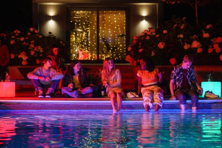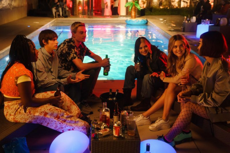 Auf einer Hausparty feiern die Freunde ausgelassen. Von links: Louis (Spike E. Fearn), Mei (Callina Liang), Regan (Tessa Lucille), Zia (Carla Woodcock), Neve (Lauryn Ajufo) und Jonny (Eden H. Davies).