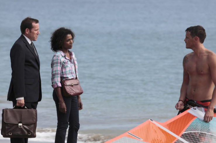 Eine traurige Angelegenheit am Strand: Diana Watson (Frances Barber, l.), Mike Watson (Robert Pugh, 2.v.l.), Adam Fairs (Luke Allen-Gale, M.), Sally Watson (Alice Henley, 2.v.r.) und Darren Moore (Matt di Angelo, r.) nehmen Abschied.