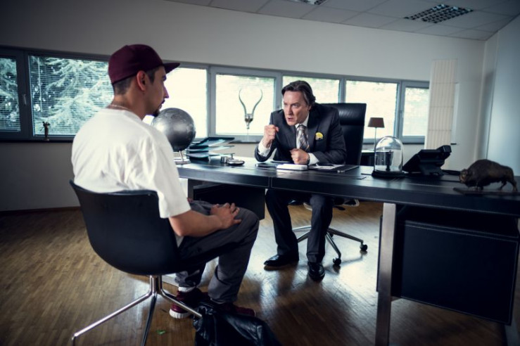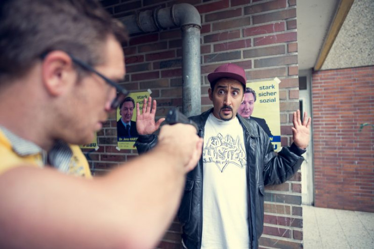 Sol (Eko Fresh, r.) wird von dem Undercover-Polizisten Philip (Frederick Lau, l.) überrumpelt.
