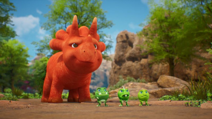 Unsere vier Helden sind fest entschlossen, das letzte Stöckchen im Vegesauriertal zu ergattern.