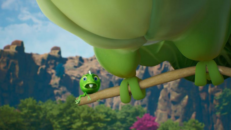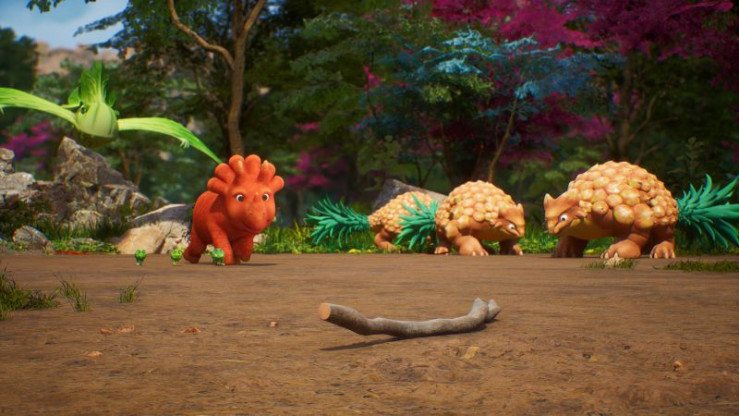 Der kleine Erbs-Rex Split verspürt einen starken Juckreiz und hätte gerne ein Kratzstöckchen. Aber im Vegesaurier-Tal ist gerade Nestbauzeit und die Vögel sammeln jedes Stöckchen.