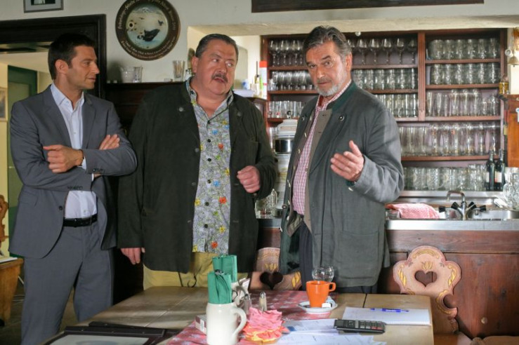 In den Fokus der Ermittlungen von Hansen (Igor Jeftic, l.) und Hofer (Joseph Hannesschläger, M.) gerät Wirt Charly Roth (Ralph Schicha, r.).