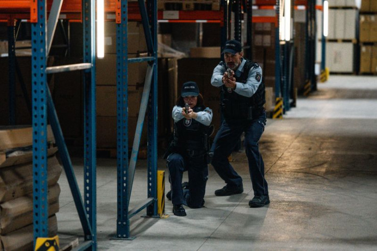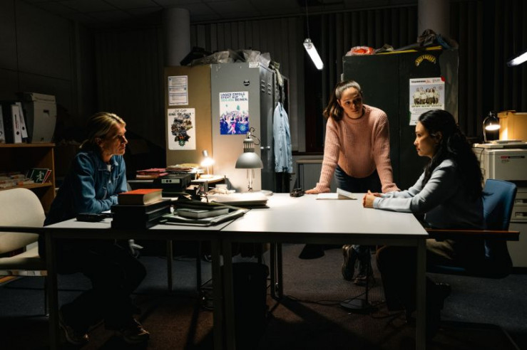 Lilly und Matti werden von der Frau des ermordeten Schauspielers als Geiseln festgehalten, bis die SOKO den wahren Täter findet. Unter enormen Zeitdruck befragen Vanessa Haas (Kerstin Landsmann, l.) und Amira Mahdi (Aylin Ravanyar, M.) erneut die Hauptverdächtige Kathleen Vu (Mai Duong Kieu, r.).