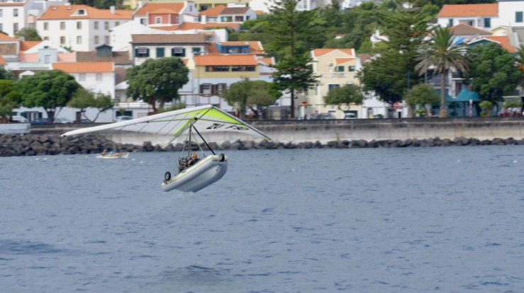 Die neben der Insel Pico gelegenen Insel Faial ist ein Treffpunkt für Weltumsegler und Abenteurer. Einer von ihnen ist Bryan Eaton, der sich mit einem zum Flugzeug umgebauten Schlauchboot das erste Mal in die Luft wagt.