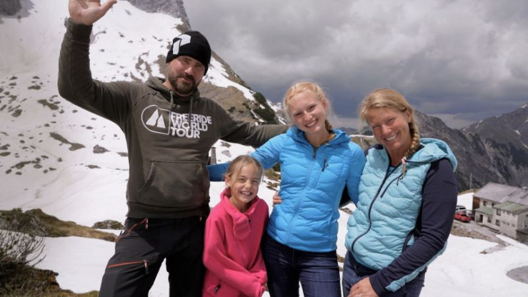 Bertl und Claudia Rackwitz-Hartmann (Mitte und 2. von links) sind die neuen Hüttenwirte der Lamsenjochhütte im Karwendel. Die beiden haben erst im Jahr zuvor die frisch renovierte Falkenhütte als Pächter übernommen. Im Winter betreiben sie auch noch eine Après-Ski-Hütte in Fieberbrunn. Eine Herausforderung für die ganze Familie.