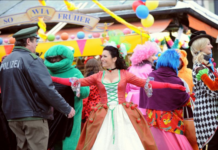 Fasching in München auf dem Viktualienmarkt und Moni Riemerschmidt (Monika Gruber) ist mittendrin. Weiteres Bildmaterial finden Sie unter www.br-foto.de.