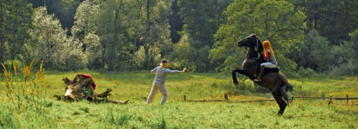 Mika Schwarz (Hanna Binke), Ostwind und Herr Kaan (Tilo Prückner).