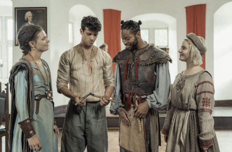 Treffen zufällig auf Prinzessin Pamina (Harriet Herbig-Matten): Papageno (Dimitri Abold, l) und Tamino (Ilyes Raoul, r)