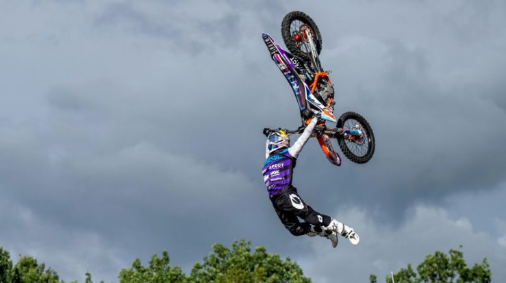 Freestyle Motocross-Athlet Luc Ackermann aus Thüringen beim Training.