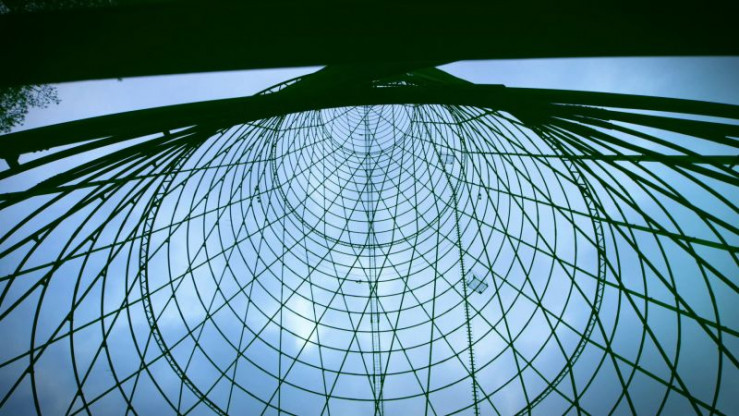 Im russischen Dserschinsk ragt ein gigantischer Stromleitungsmast einsam vor dem Horizont empor: Der Shukhov Tower hat seit 1989 ausgedient.