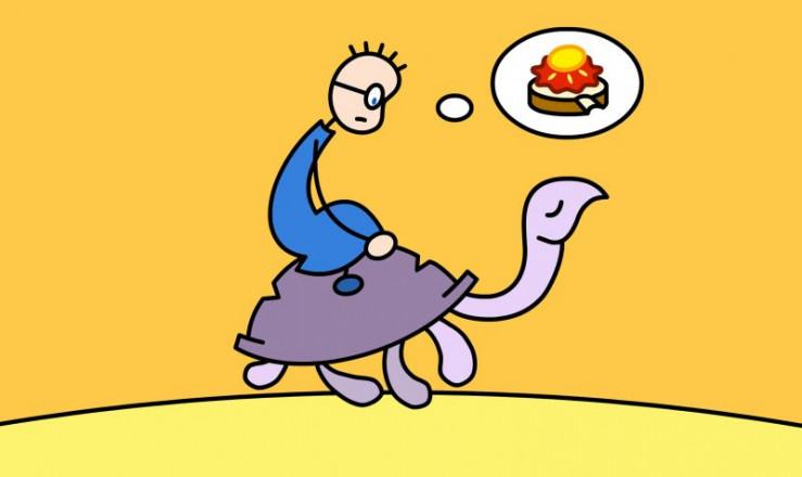 Der Müller hat für TOM ein Erdbeermarmeladebrot mit Honig auf den Holzpflock gelegt und empfiehlt ihm, auf der Schildkröte Buba dorthin zu reiten. Aber die Schildkröte ist sehr langsam. Und mittlerweile sind auch der Nette Mann und der Nette Bruder auf das Brot aufmerksam geworden...