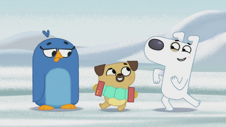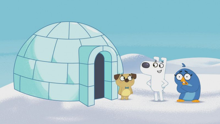 Im Buchladen ist es bitterkalt. Da gilt es herauszufinden, wie man sich am besten warm hält. Und wo ginge das besser, als in einem Buch über den kältesten Kontinent der Welt. Dort ist ein frierender Pinguin auf wärmenden Beistand angewiesen. Um ihm zu helfen, lassen sich die Hunde so einiges einfallen.