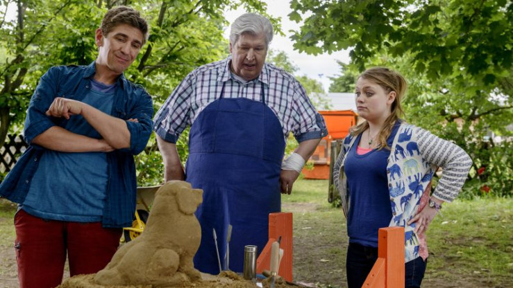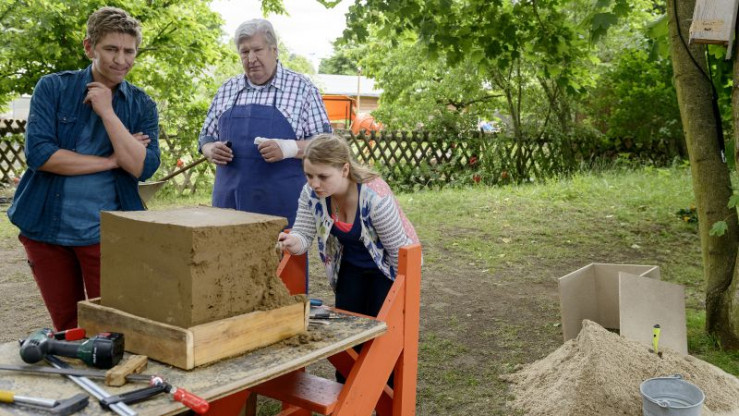 Es bleibt nur ein Tag, um eine besondere Statue zu schaffen für Charlies Bewerbung an der Kunstschule. Und die Figur muss aus Stein sein. Da hat Fritz eine geniale Idee: Wir bauen mit Sand. Sandkörner sind nichts anderes als winzige Steine, weiß Fritz. Sicherheitshalber versucht Charlie, Professor Nachtigall um Erlaubnis zu fragen. Aber der ist seltsamerweise nie erreichbar. Und auch das Bauen mit Sand gelingt Fritz nicht auf Anhieb. Warum rieselt der mit Wasser befestigte Sandklotz wieder auseinander? Ist der Sand der falsche? Wie gut, dass Nachbar Paschulke gerade einen Sockel aus Beton bauen möchte und dafür besten Bausand gekauft hat. Fritz Fuchs macht ihm ein Tauschangebot, das er nicht ausschlagen kann. Sand ist für uns Menschen enorm wichtig. In unzähligen Dingen, die uns umgeben, steckt Sand, zum Beispiel in Glas oder auch Zahnpasta. Der meiste Sand wird jedoch als Baustoff verwendet. Unsere ganze Welt ist auf Sand gebaut. Aber nicht jeder Sand ist zum Verbauen geeignet. Insbesondere Wüstensand, den es ja im Überfluss gibt, taugt dafür gerade nicht. In vielen Ländern, auch bei uns, muss der Sand zum Bauen teuer abgebaut werden. Und Bausand wird knapp. Er ist ein kostbares Gut, mit dem wir verantwortungsvoll umgehen müssen. Hans-Joachim Heist, bekannt als "Gernot Hassknecht" aus der "heute-show", in einer Gastrolle als "Kunstprofessor Nachtigall".